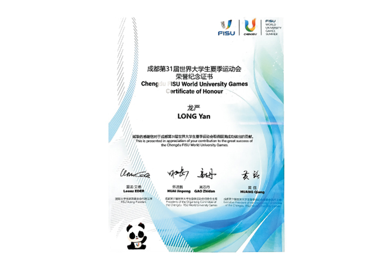 成都第31届世界大学生夏季运动会 荣誉纪念证书